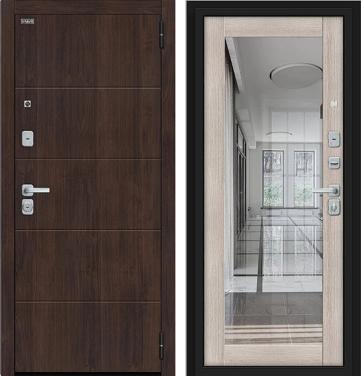 Надежная входная Дверь Браво Флэт/BChrome Almon/Cappuccino Melinga премиум класса по цене 42 063 руб. Большая толщина стали защитит от проникновения в ваш дом, квартиру или коттедж. Используется очень качественная фурнитура: замки, цилиндры, ручки, защелки. Покрытие и отделка двери изготовлено под внимательным контролем производителя. Дверь имеет долгий срок службы и гарантию.