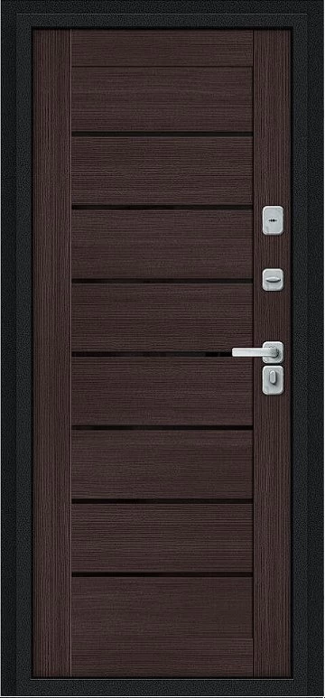 Дизайнерская входная Дверь Браво Thermo Техно Д2/BChrome Букле черное/Wenge Melinga класса Люкс с несколькими листами стали, звукоизоляцией и теплоизоляцией. Утепленный короб и полотно защитят от сквозняков и шумов. Модель не только надежная, комфортная, защищенная и высочайшего качества, но и очень красивая! Будет отлично сочетаться с интерьером дома, квартиры или офиса. Сейчас действует выгодное предложение по цене: 57 113 руб.